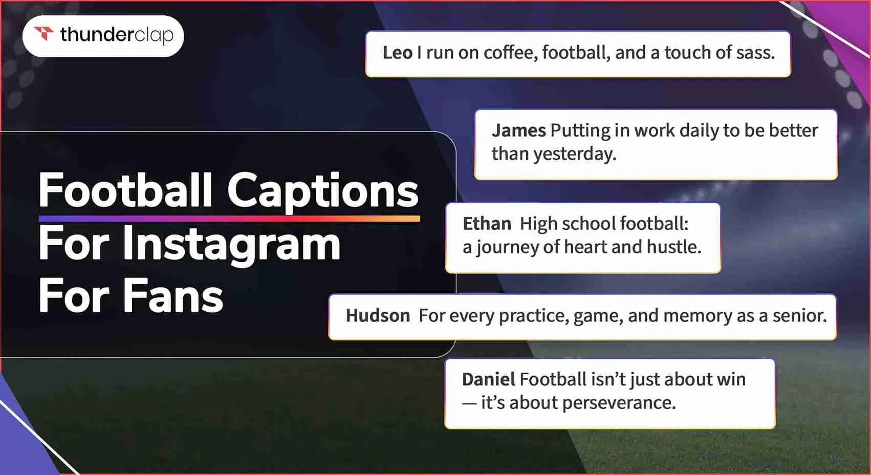 From funny lines to inspirational quotes, this list of top football Instagram captions will help fans at every level.