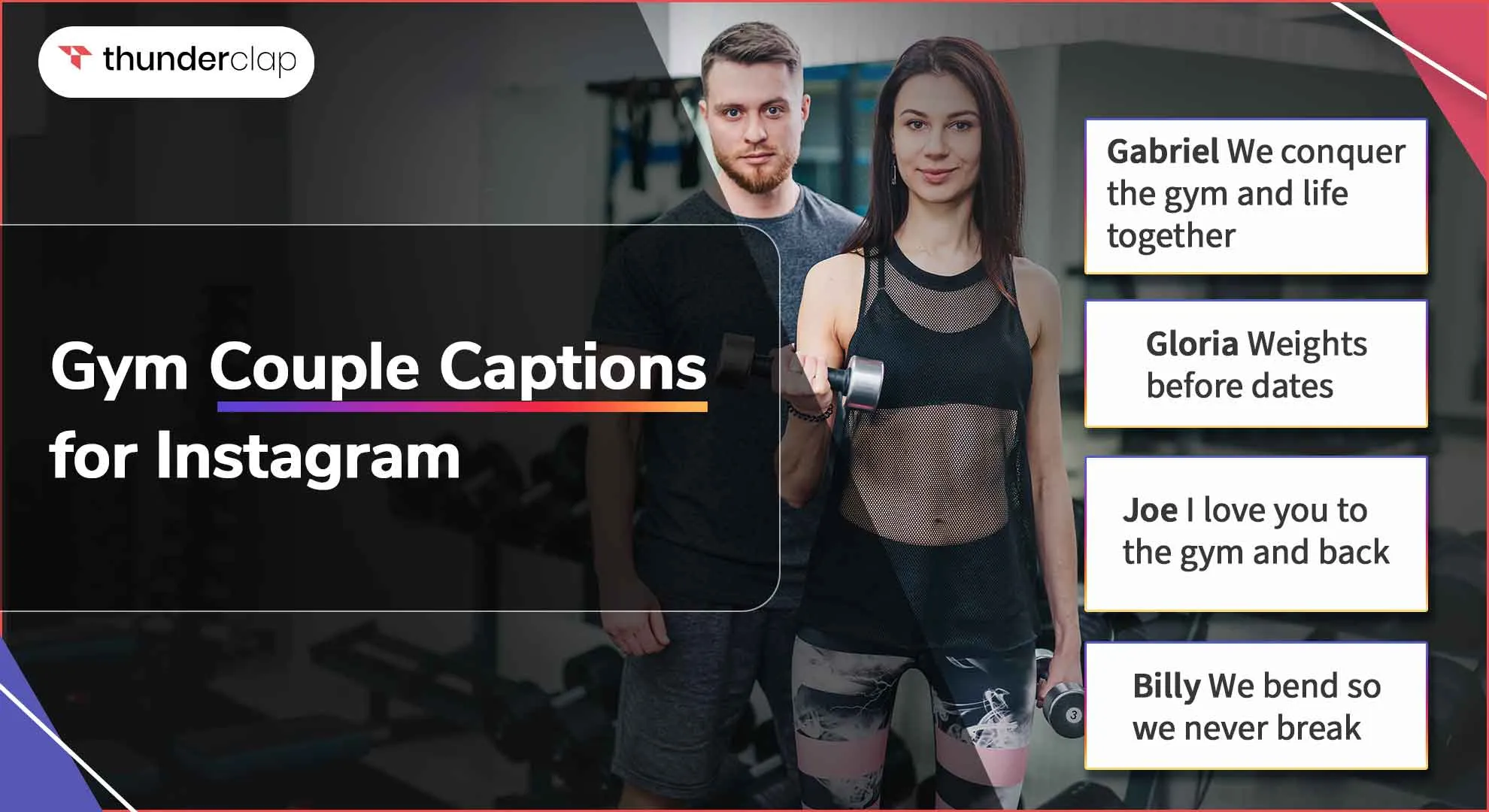 Gym couples are such motivational people, encouraging each other to be stronger. Sharing these moments on Instagram must feel like a celebration. But have you ever wondered which caption will go perfectly with your posts?