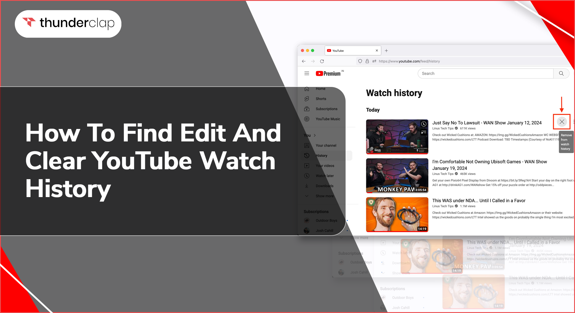 Manage your YouTube search and watch history to improve your YouTube experience. You can avoid irrelevant videos that no longer excite you. Follow the detailed steps in this guide to delete YouTube watch history on a mobile device or your desktop. You will also learn how to edit and turn off watch history easily. However, to get better control over YouTube, you may use reliable YouTube growth services from Thunderclap. With it, your experience on YouTube becomes smoother.