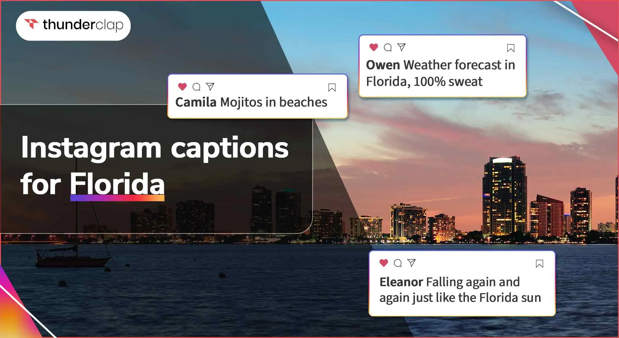 Capture the moment and throw it with your unique Instagram captions for Miami Beach and quotes for Florida sunsets;